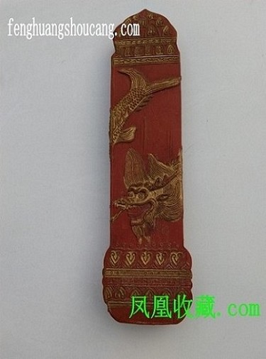 墨是“文房四宝”之一。借助这种独创材料,书画艺境才能得以实现。古人云:“有佳墨,如名将有良驹。”一方优质墨能直接影响到书画家的情绪与创作。朱砂墨以天然矿物质朱砂研细加胶制作而成,用这种颜料染成的红色非常纯正鲜艳。具有永不褪色的特性,所以备受文人钟爱。清代皇帝常以朱砂墨批奏章。此朱砂墨由清朝左宗棠专藏,名墨家曹素功制作!图案《描金龙纹,没有龙爪,体现做臣子的本份等级!